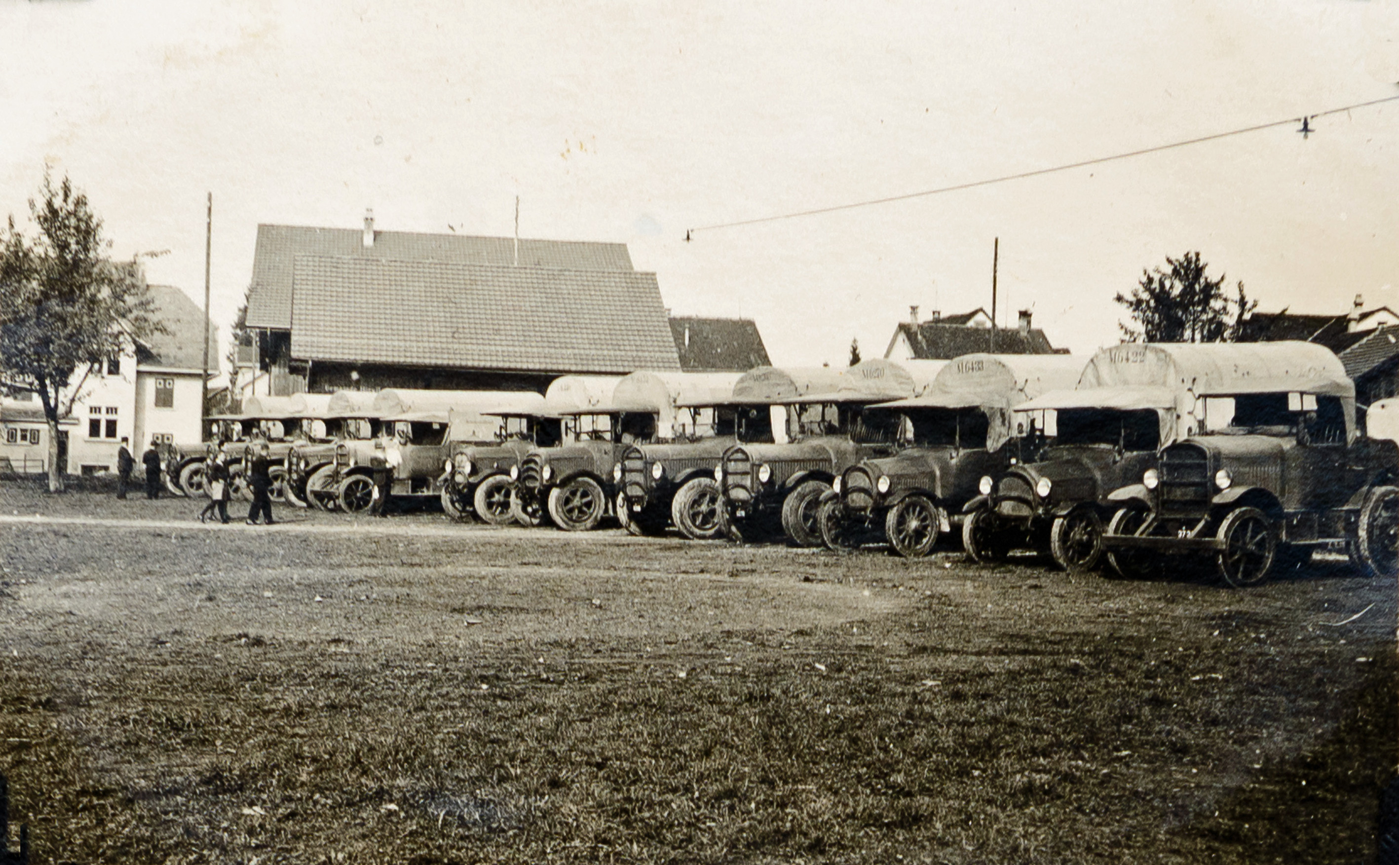 | Beschriftung: | Militärwagen parkiert in Hinwil, 1943 |