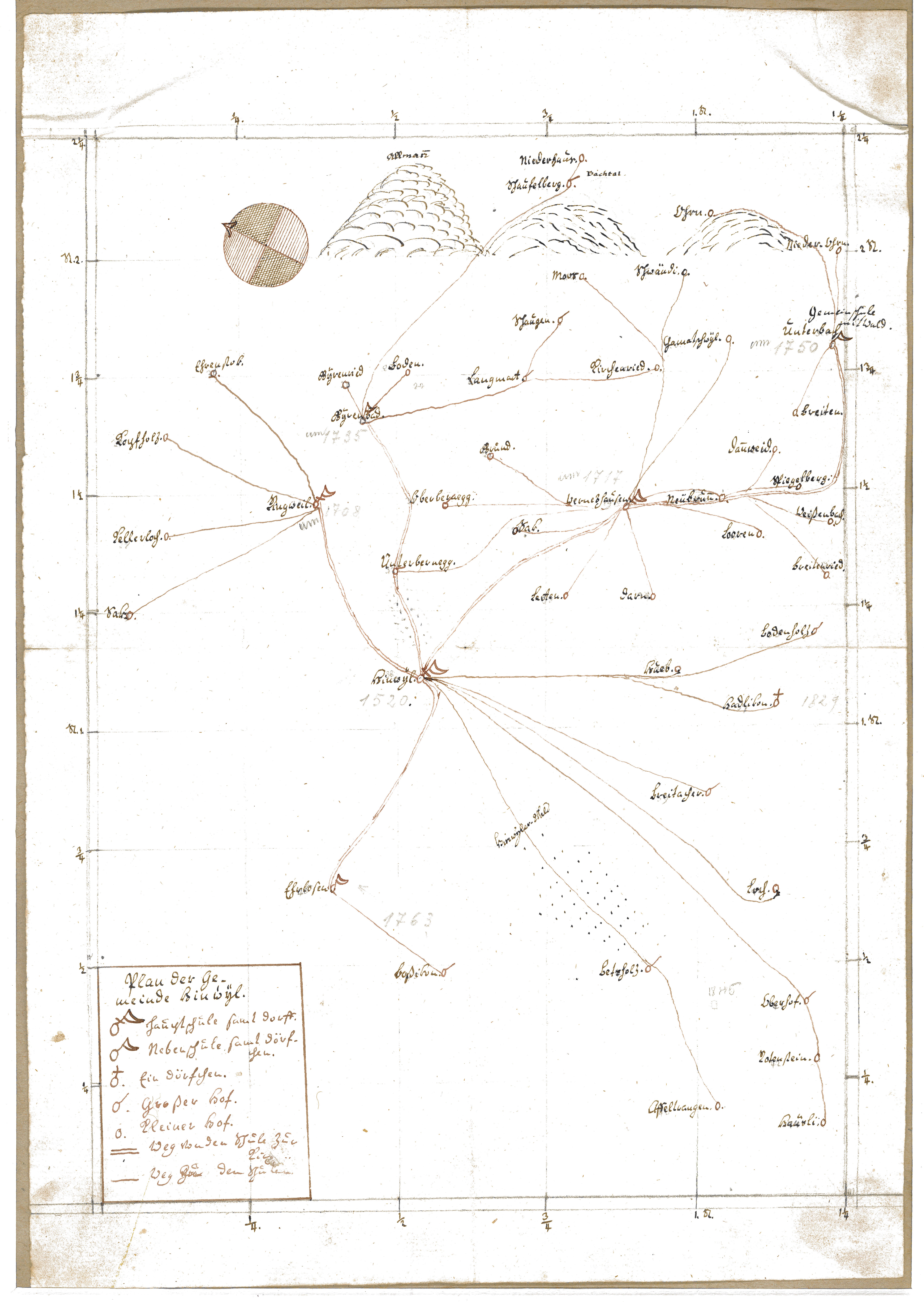 | Beschriftung: | Schulen und Schulwege in Hinwil, um 1776 |