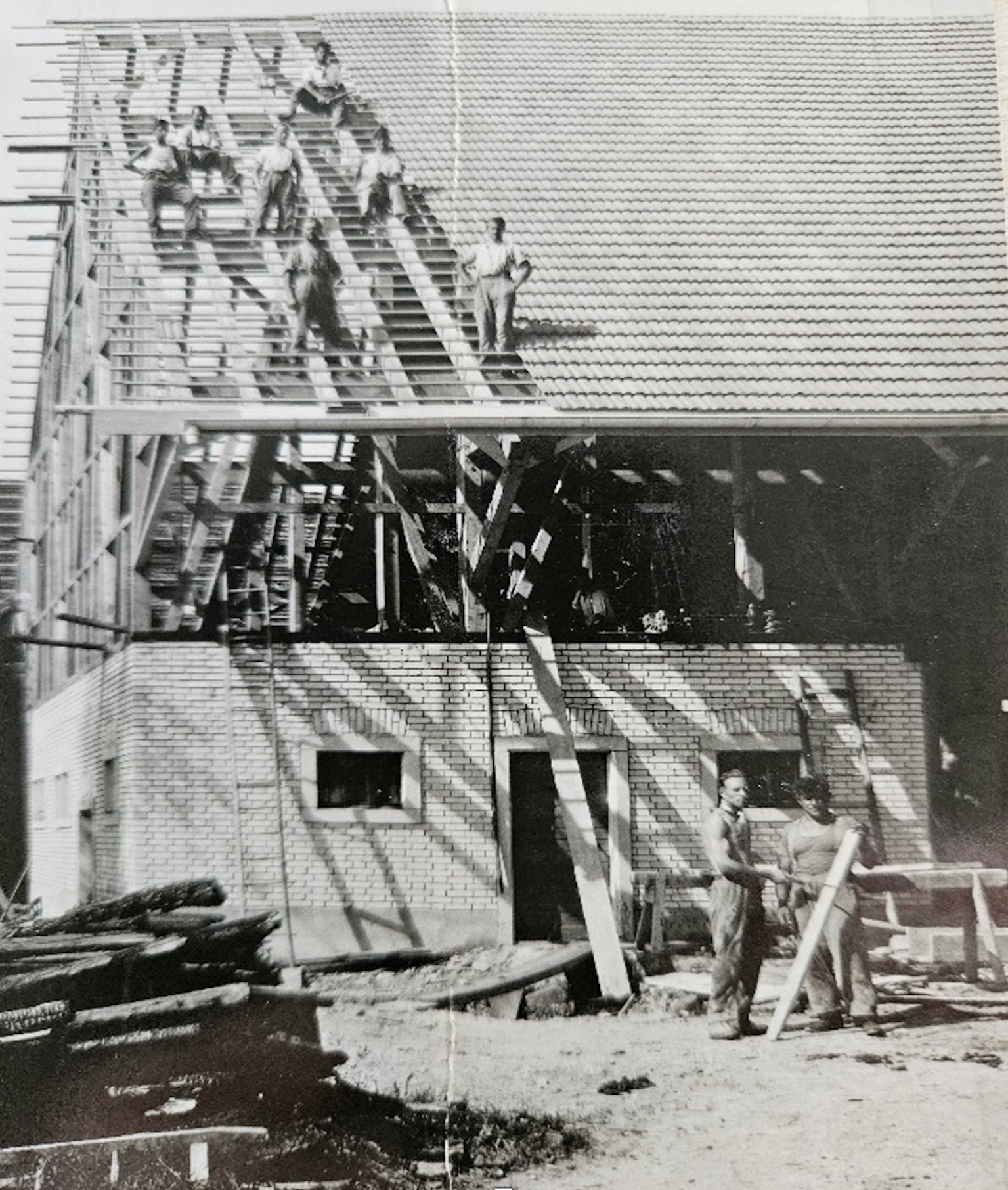 Aus: Hinwilpedia / Von: unbekannt / Lizenz: CC BY-SA 4.0 / Link: https://www.hinwilpedia.ch/Datei:19290000_U._Looser_Scheunenbau_in_Erlosen_ohne_Ger%C3%BCst_und_Ortschutz.jpg
