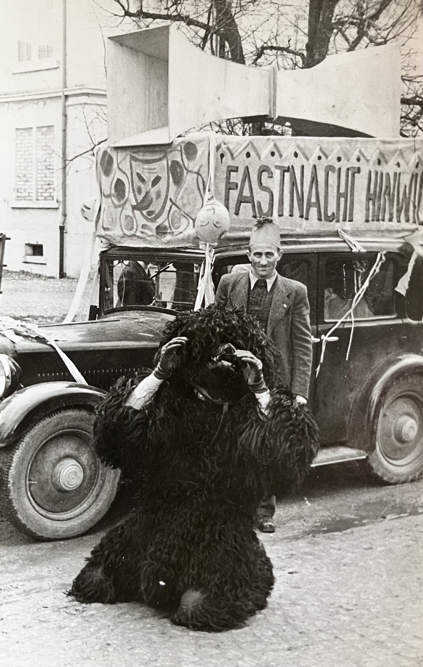 Aus: Hinwilpedia / Von: unbekannt / Lizenz: CC BY-SA 4.0 / Link: https://www.hinwilpedia.ch/Datei:19410000_Auto_von_U.Looser_am_Fasnachtsumzug.jpg
