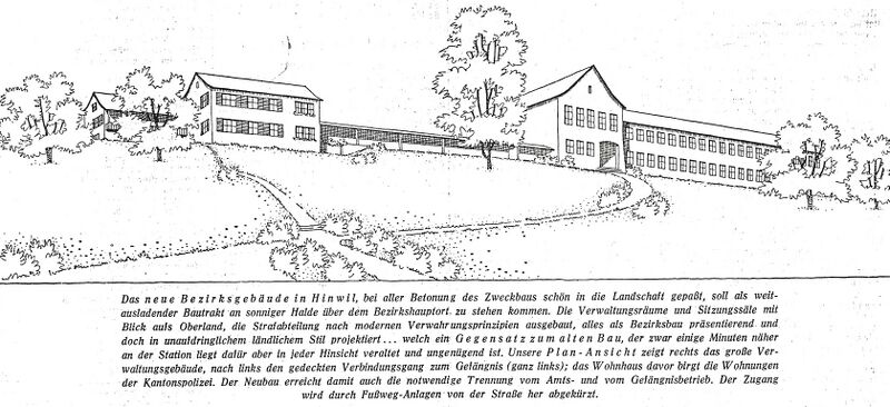 Aus: Hinwilpedia / Von: unbekannt / Lizenz: CC BY-NC-SA 3.0 CH / Link: https://www.hinwilpedia.ch/Datei:19440000_Projektskizze_Bezirksgeb%C3%A4ude_Hinwil.jpg