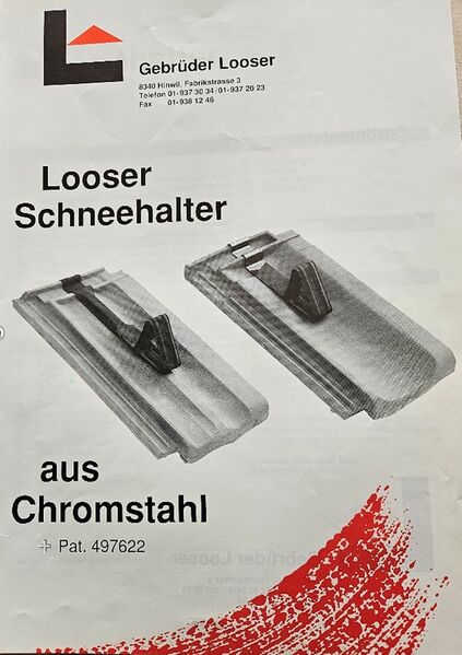 | Beschreibung: | Produktprospekt, patentierte Schneehalter Looser, farbig, Deckblatt |