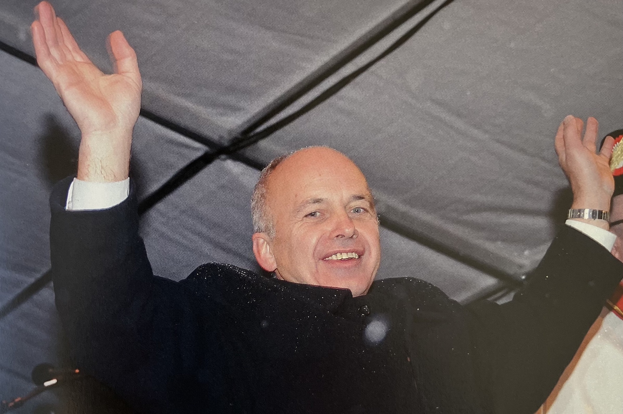 Aus: Hinwilpedia / Von: Kurt Ruf oder Roland Glättli / Lizenz: CC BY-SA 4.0 / Link: https://www.hinwilpedia.ch/Datei:20081218_Freude_von_Ueli_Maurer_beim_BR-Empfang_in_Hinwil.jpg