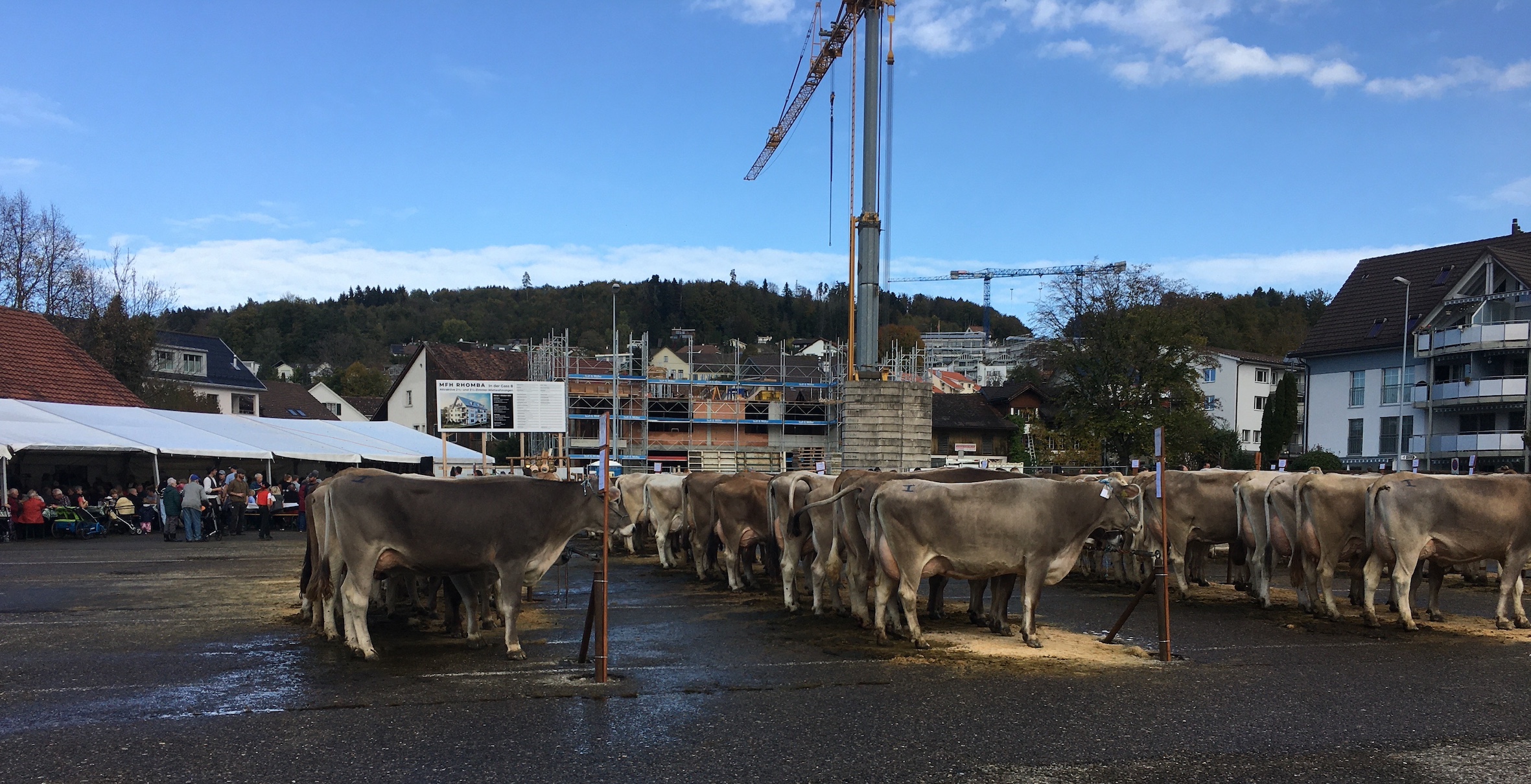 Aus: Hinwilpedia / Von: Plüss, Mark (1959), Ortschronist / Lizenz: CC BY-SA 4.0 / Link: https://www.hinwilpedia.ch/Datei:20221026_Viehschau_Gemeindeplatz.JPG