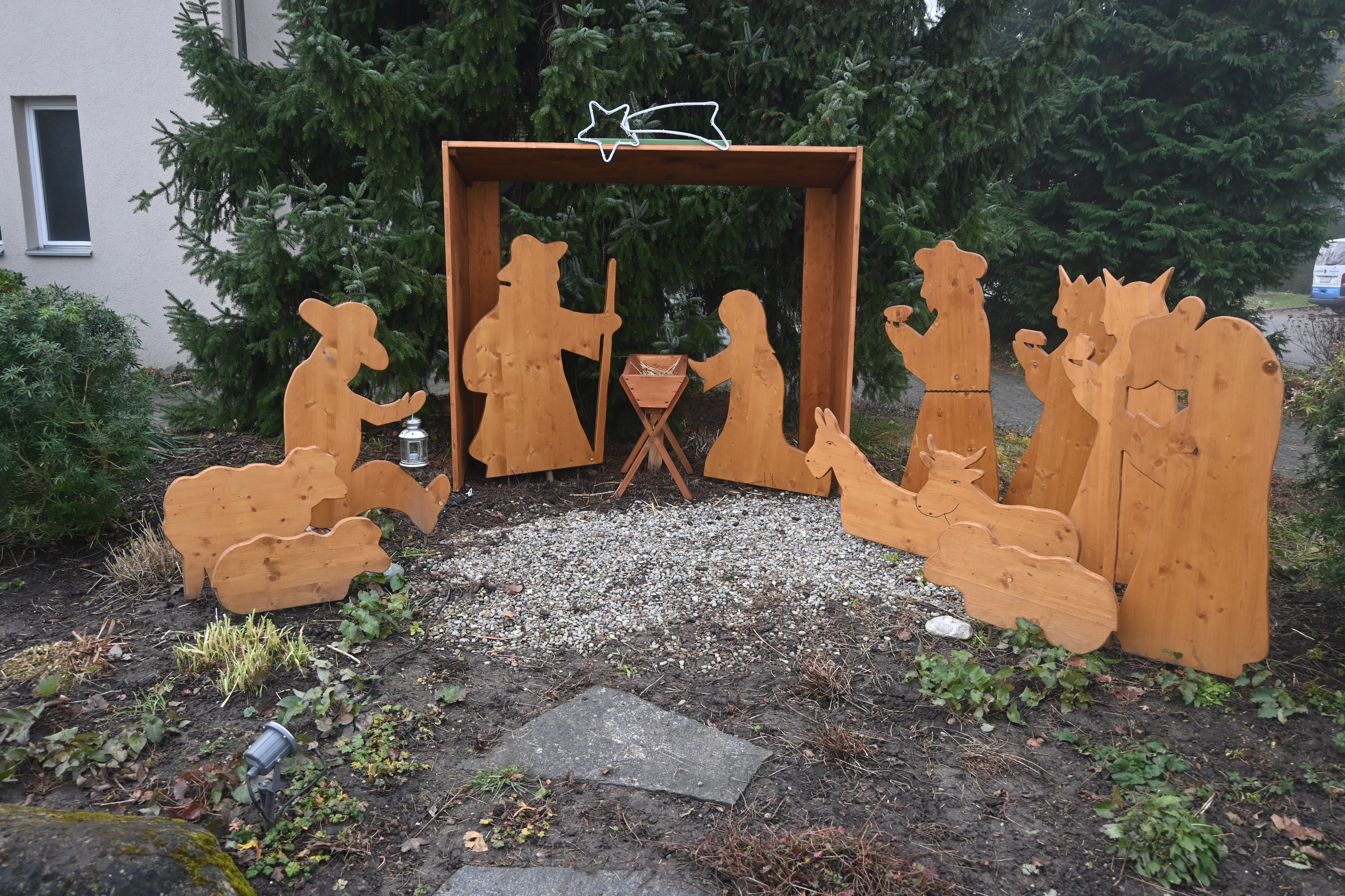 | Beschriftung: | Weihnachtskrippe vor der katholischen Liebfrauenkirche, 2025 |