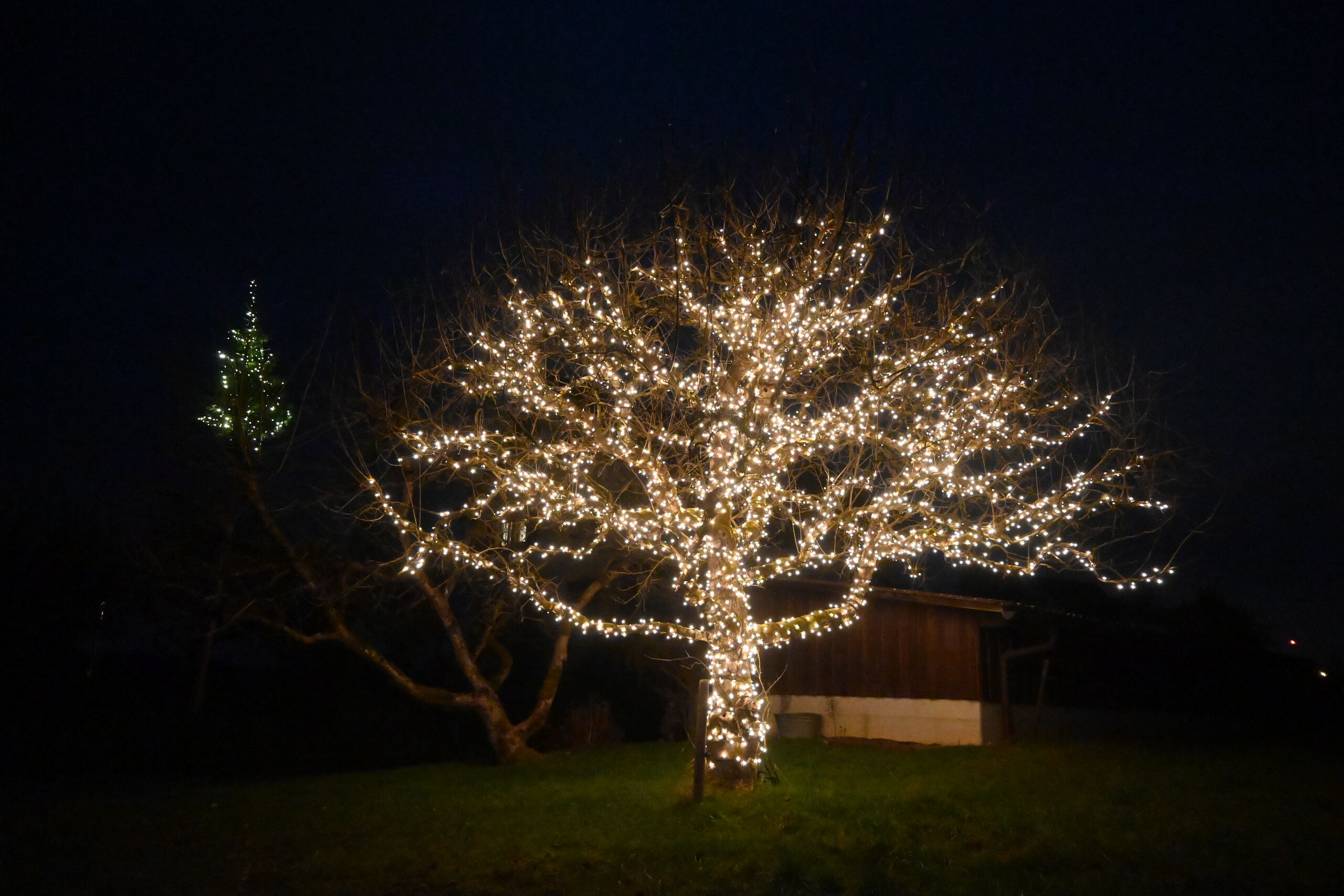 | Schlagwörter: | Obstbaum, Baum, Weihnachtsdeko, Lichterkette, Weihnachten, Advent |