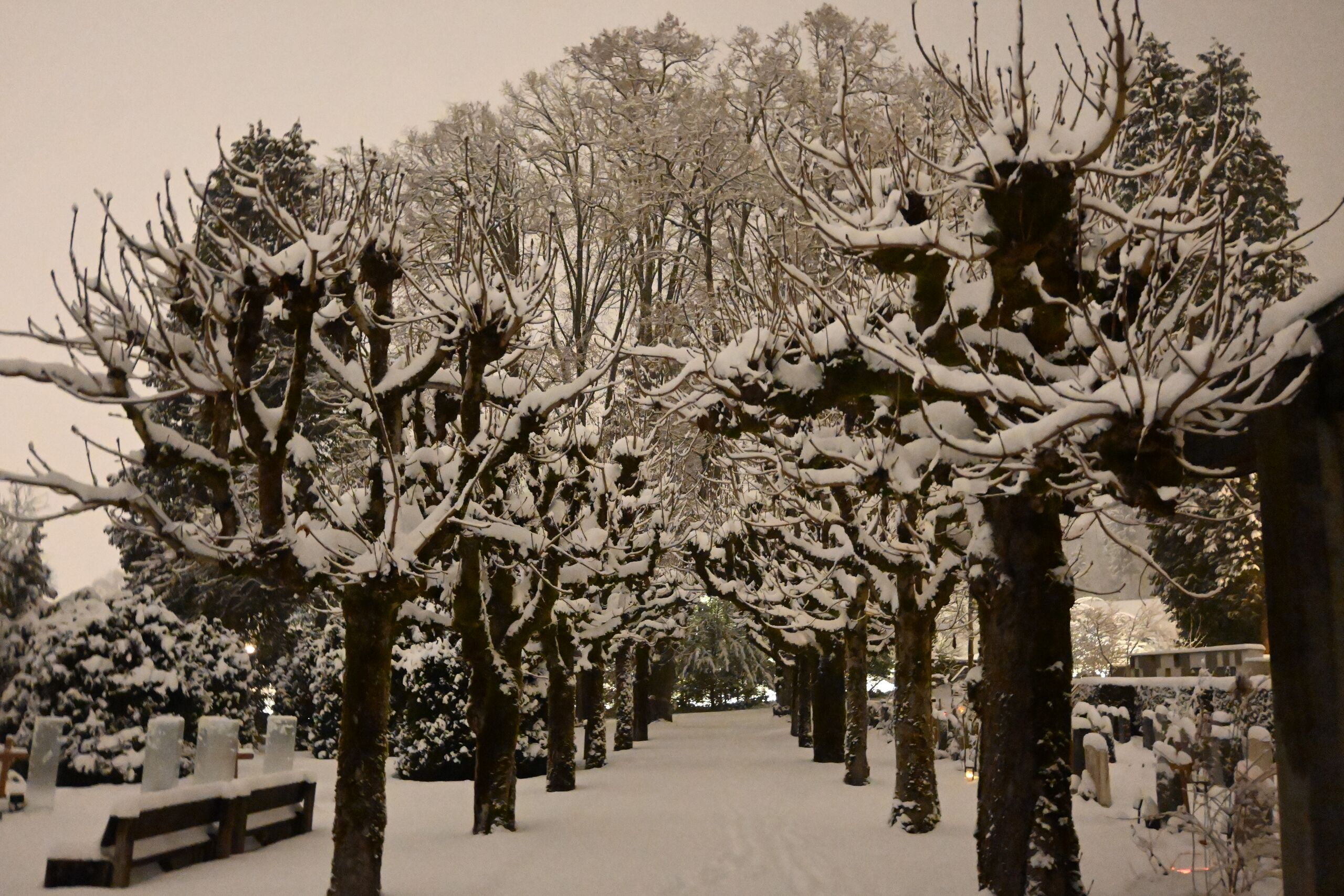 | Schlagwörter: | Friedhof, Allee, Bäume, Kastanien, Park, Garten, Schnee, Winter |