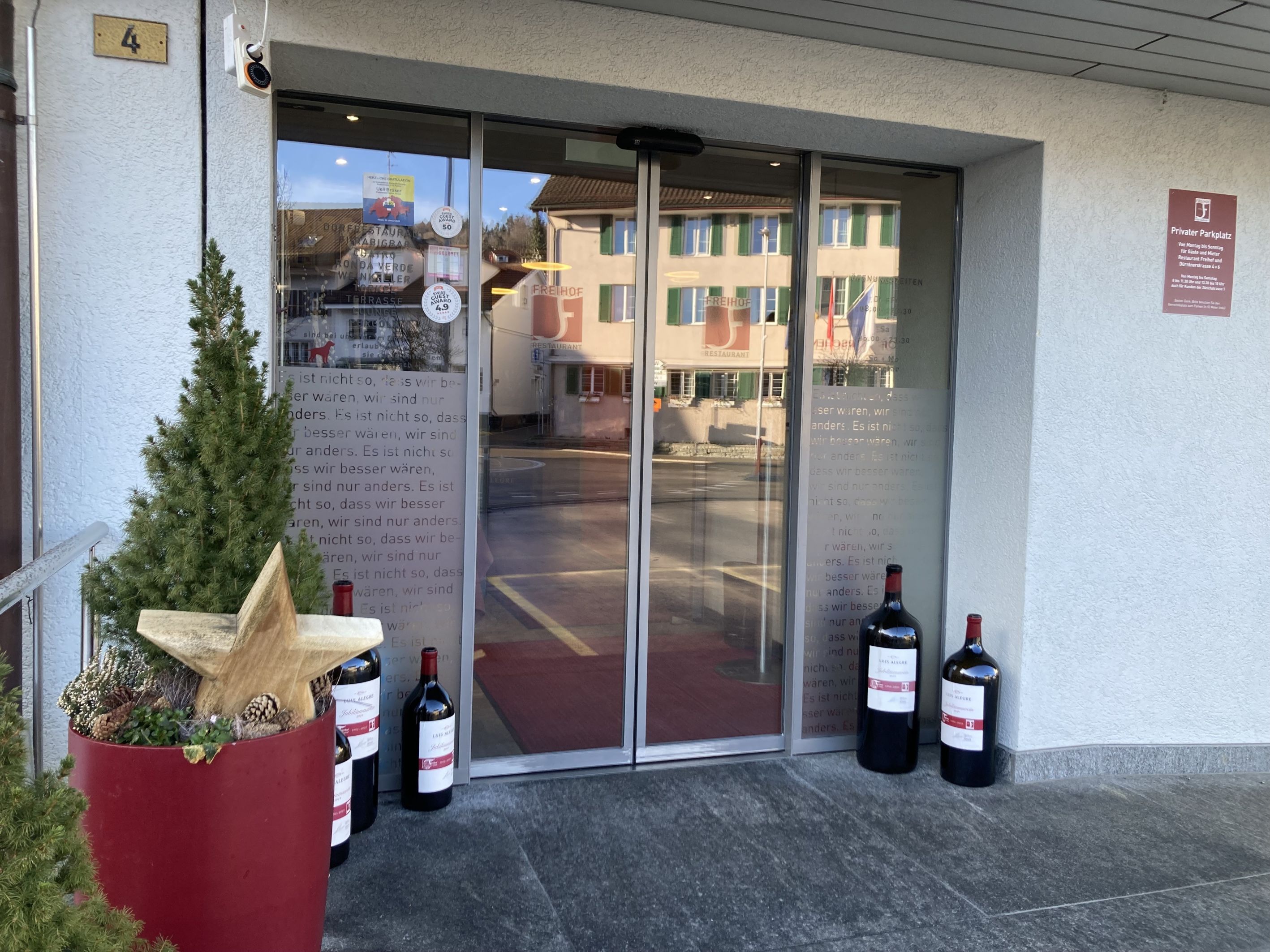 Aus: Hinwilpedia / Von: Beatrice Hagen / Lizenz: CC BY-SA 4.0 / Link: https://www.hinwilpedia.ch/Datei:20260207_Freihof_Eingang.jpg