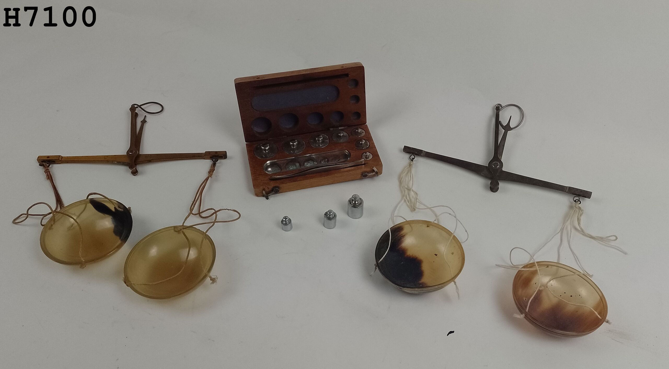 | Beschriftung: | Zwei Hängewaagen und Gewichtssteine |