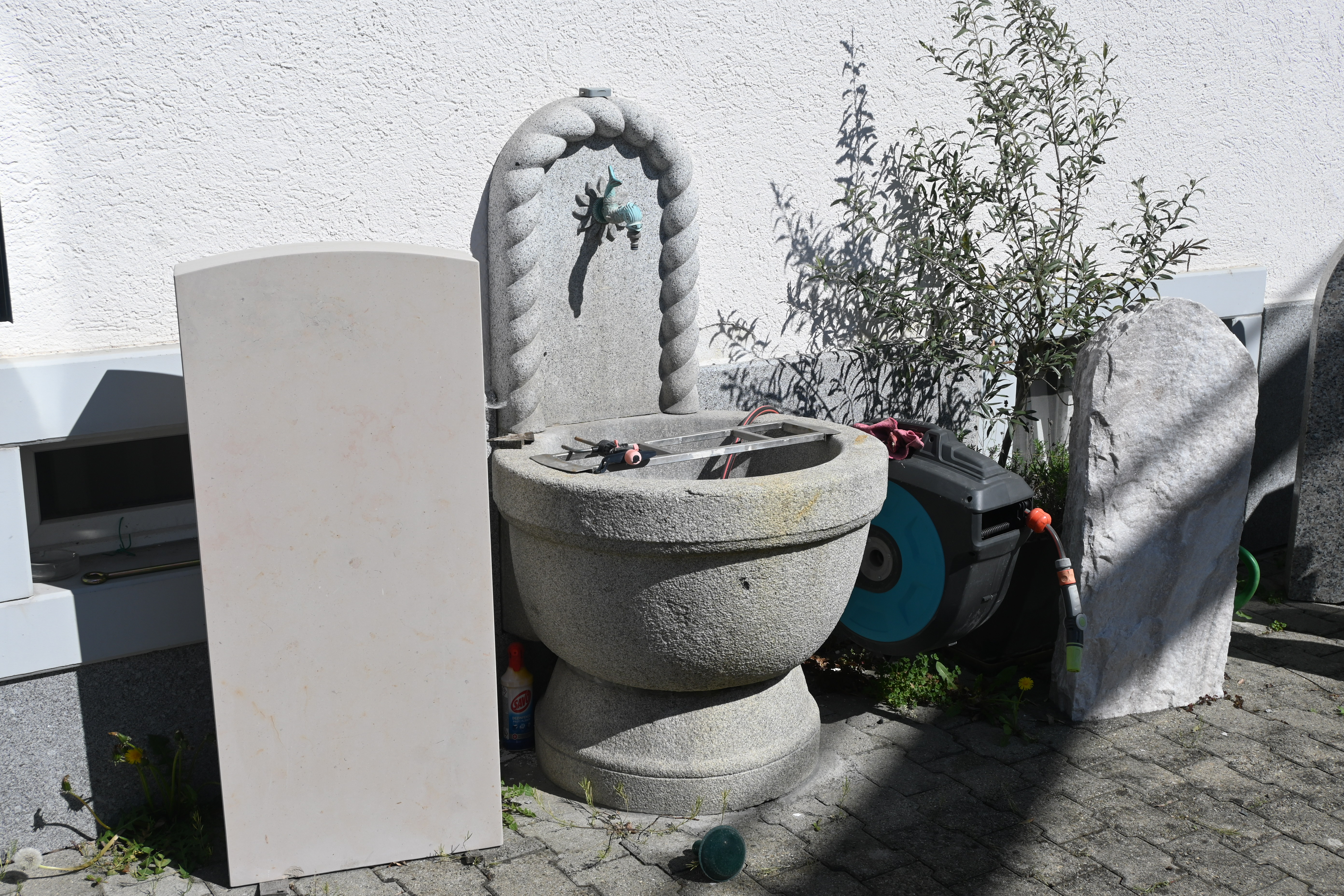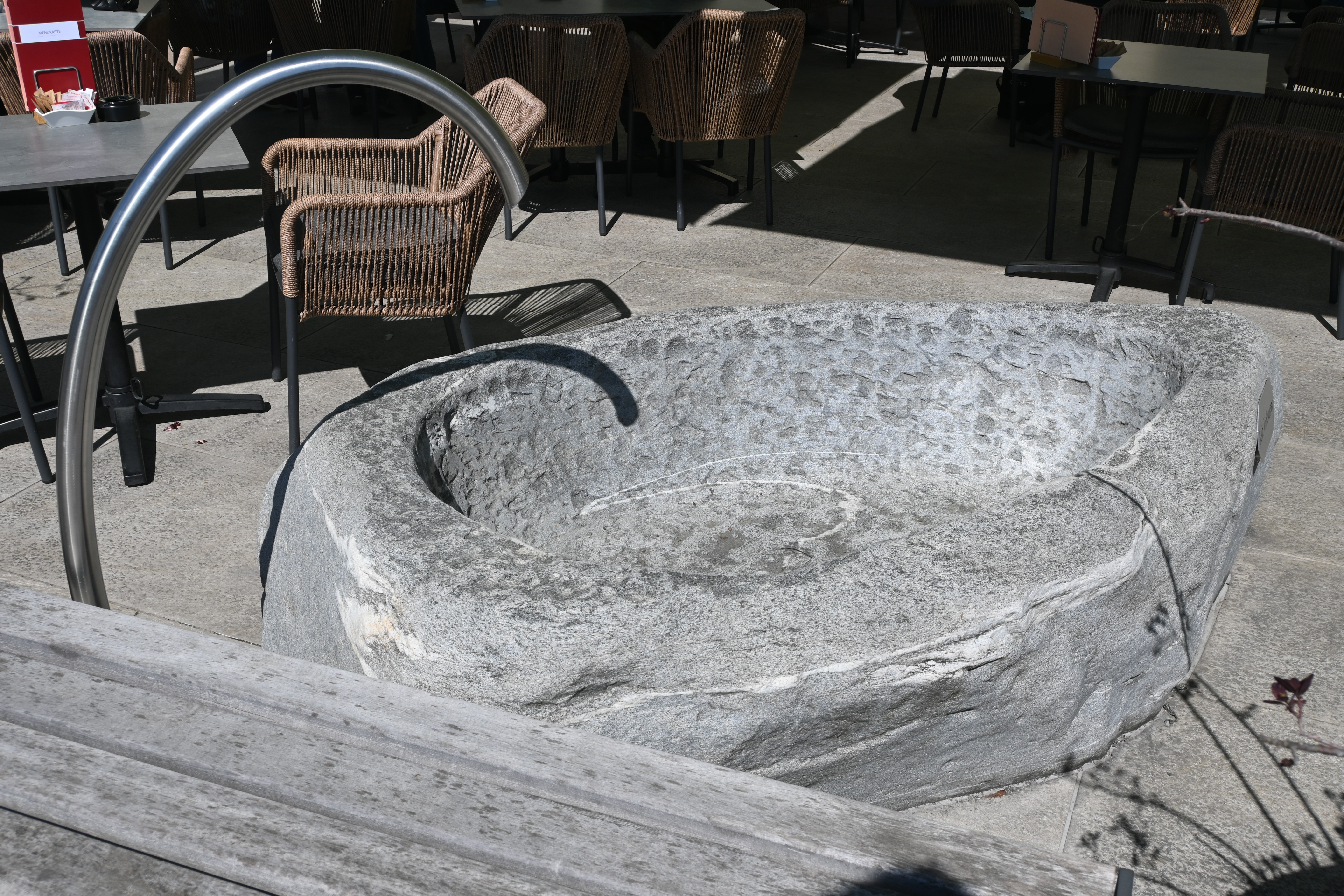 | Steiner-Brunnen, bei der Bäckerei Steiner am Bahnhofplatz | 2023 | Elliptische Natursteinschale mit geschwungenem metallenem Zuflussrohr | |