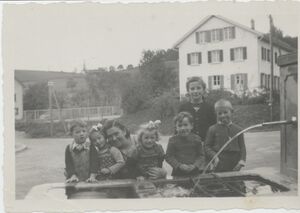 | Gstalden-Brunnen, vor dem Hof Gstalden an der Walderstrasse | 1936 | Rechteckiger Sandsteintrog, verziert mit dem Gemeindewappen und Art-Déco-Formen | |